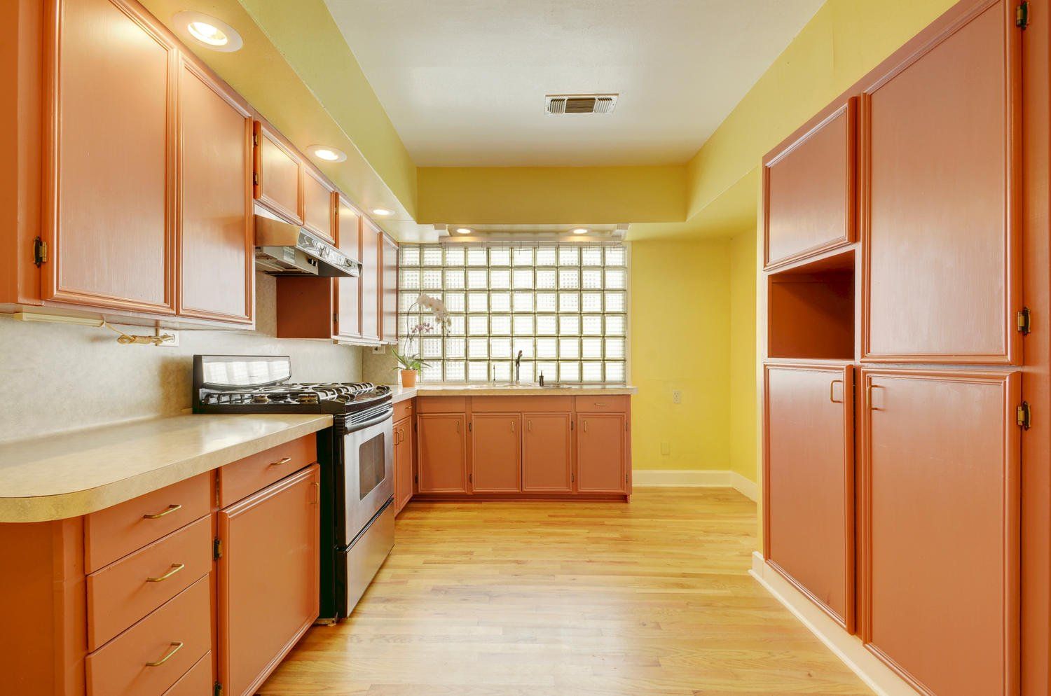 - Kitchen has 4 burner KitchenAid range with gas stove