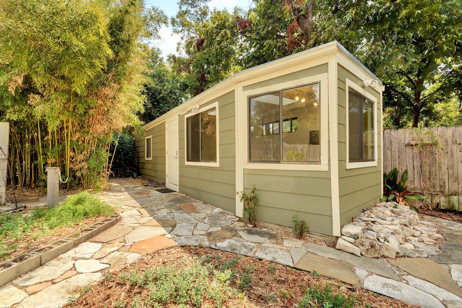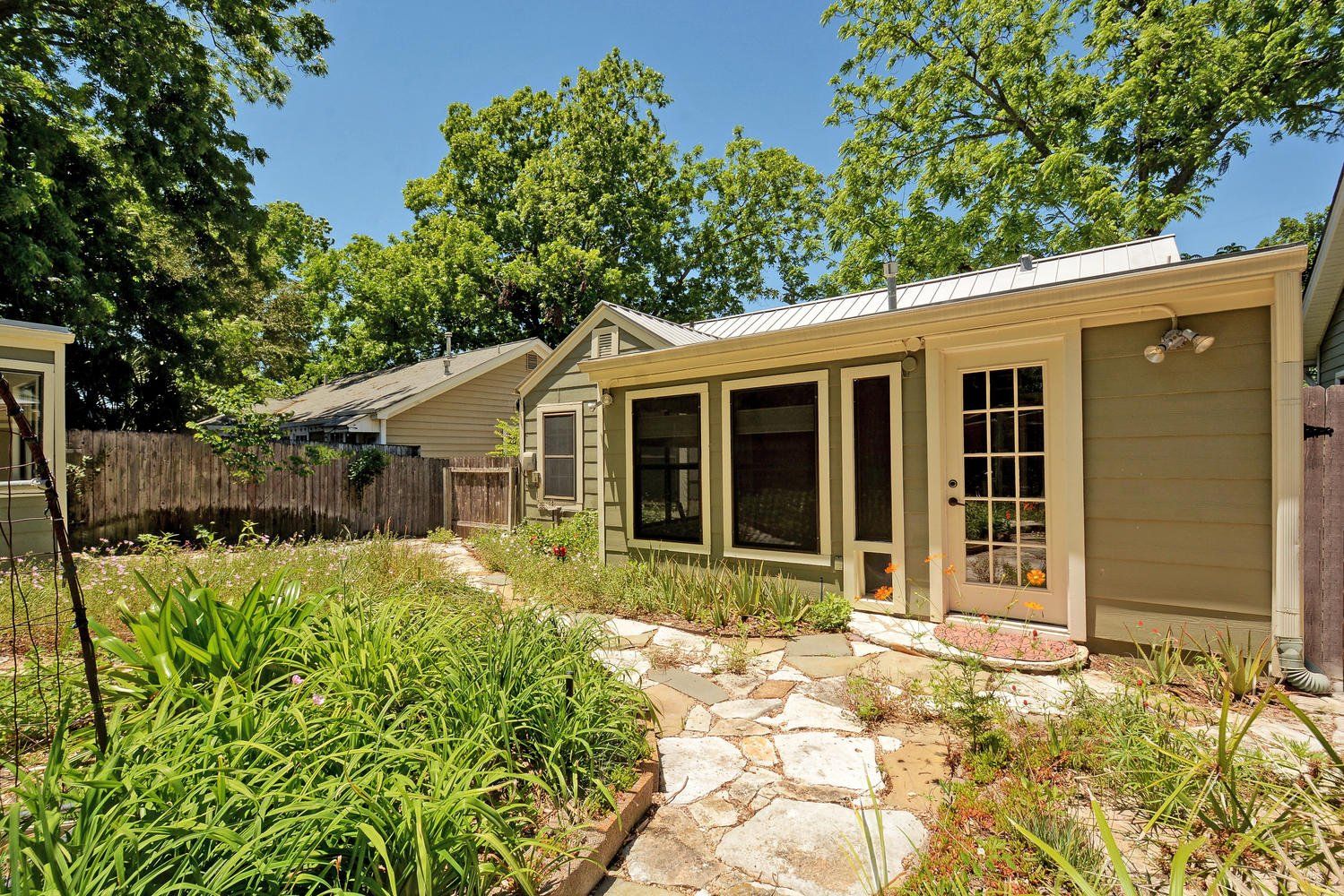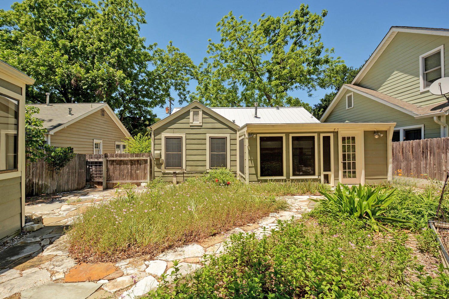 A sweet gem of a home in the HIGHLY sought after neighborhood of Old Enfield. This well maintained home has been pre-inspected. It has fabulous wood floors which have been recently refinished and gleam like new. Beautiful gardens in the front and rear enhance the charm and character of this 1937 Central Austin home. The front door opens into the main living room, which has a lovely fireplace and two arched doorways, one leading into the kitchen, the other into a hallway that connects the two bedrooms. There are two living areas, one of which could be converted to a third bedroom. Updates include a metal roof with a heat barrier installed in 2008, new central air and central heat unit installed in 2012 (approximately, per owner), exterior HardiPlank siding was 3installed in 2008, along with double-pane windows and additional attic insulation. In the back yard there's a 10' x 34' approximately) building with a 12' x 10' (approximately) storage room inside. This building can be a studio, office or green house. It has an AC window unit, and many windows plus a skylight to let in natural light.