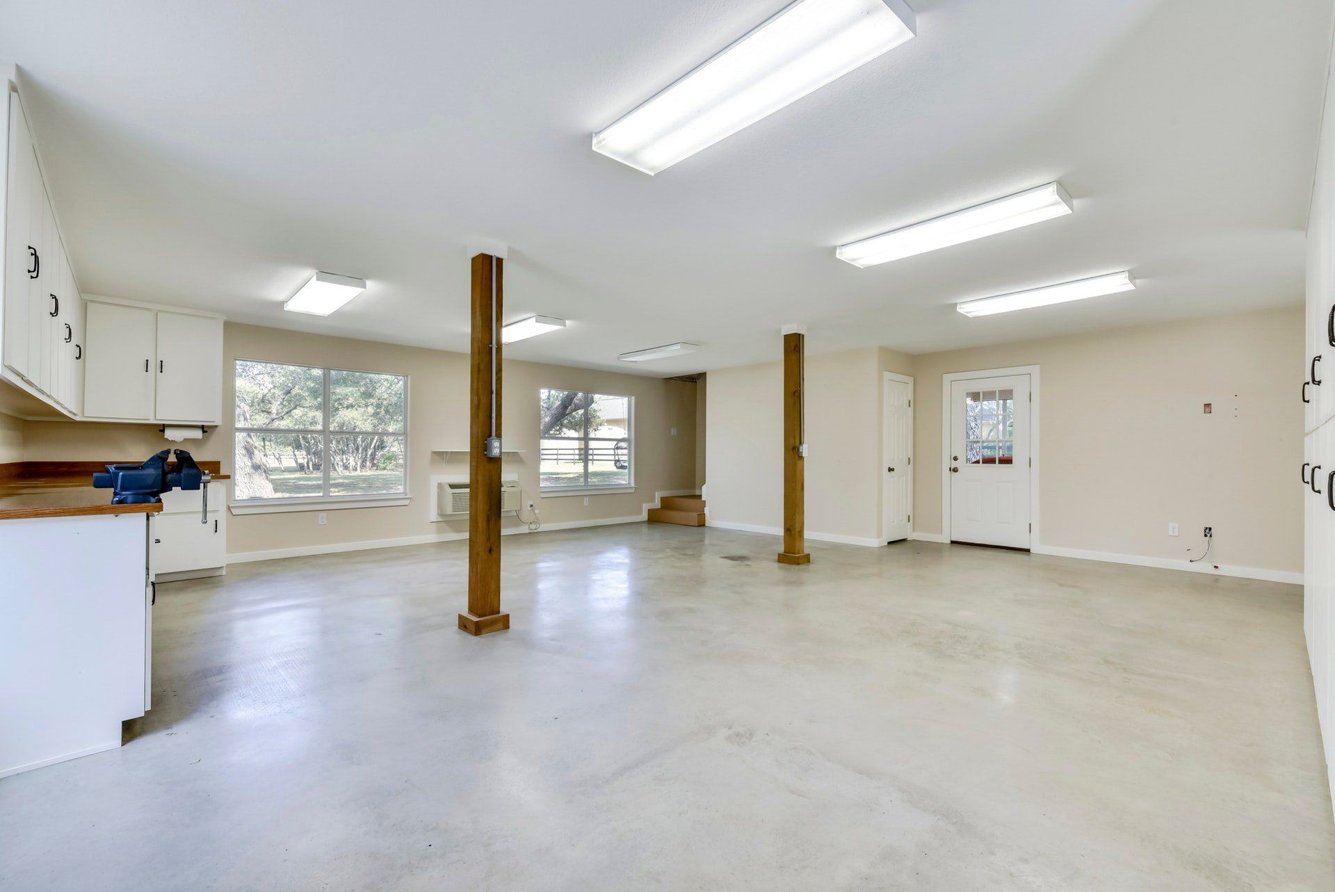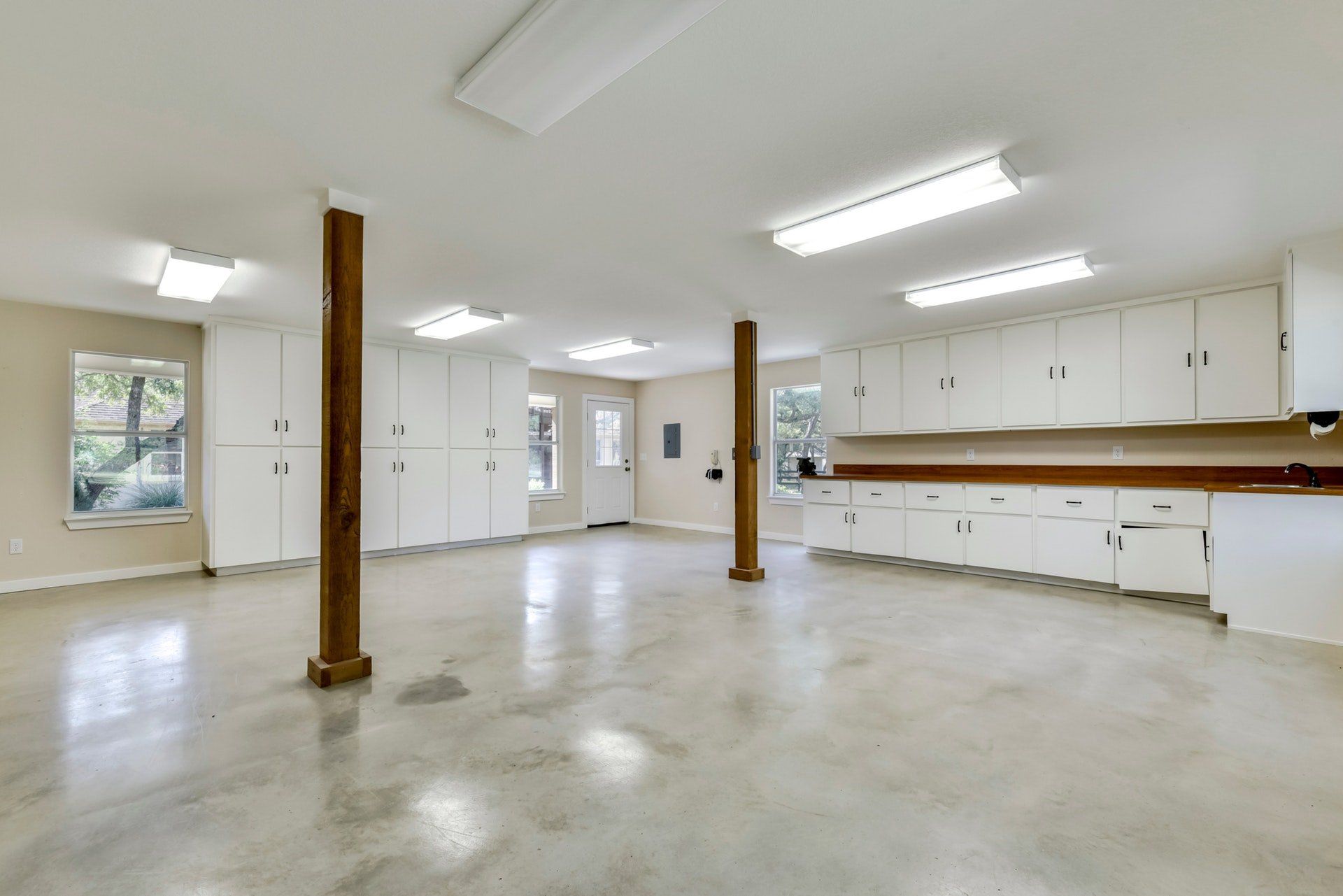 - Attached, oversized, rear entry 2-car garage with storage, plus 3rd garage space in workshop