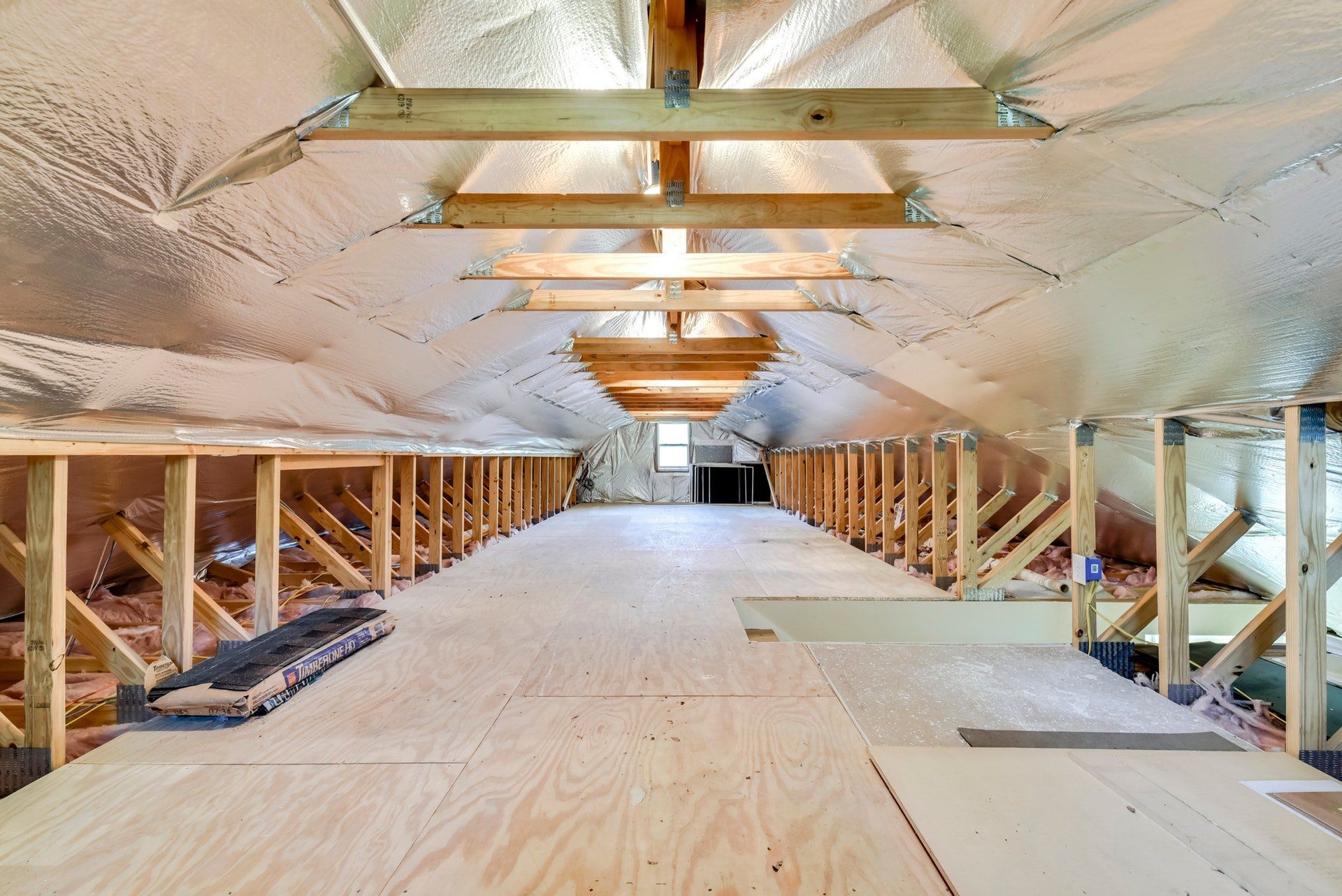 - Thermal barrier aluminum insulation installed in the attics of the house and workshop