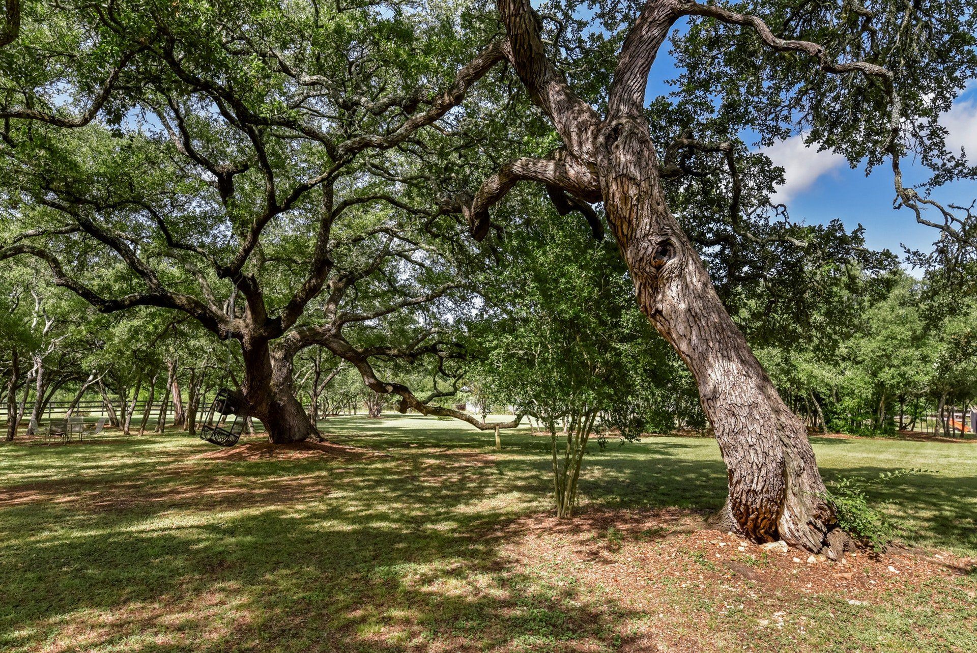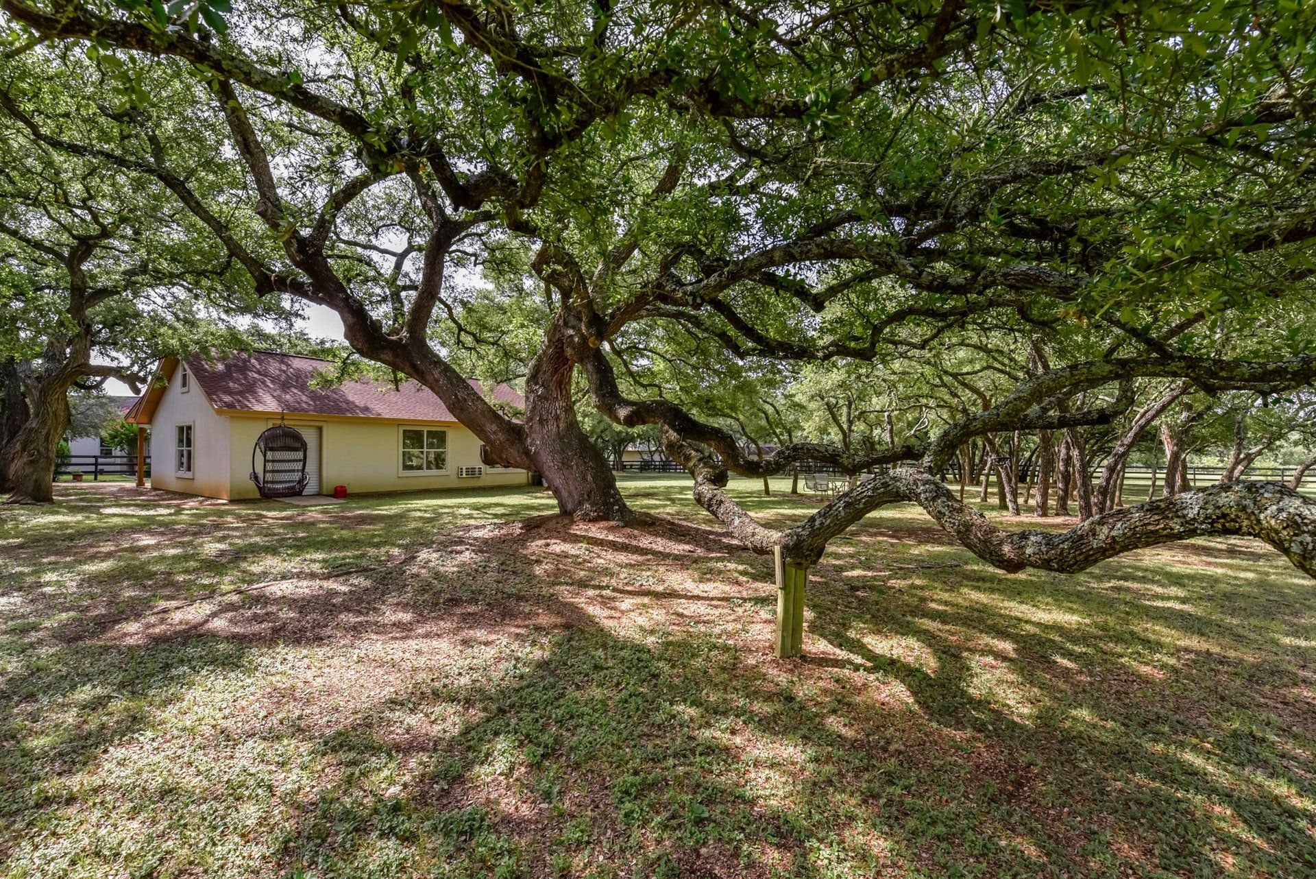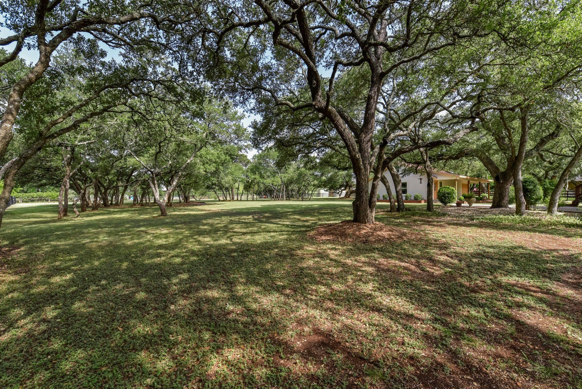 - Located within highly desirable Woodland Estates the home sits on a beautiful and tranquil 2.16 acre (approximately) level lot with 100+ large and medium oaks. The back yard is completely fenced and it backs to a picturesque farm
